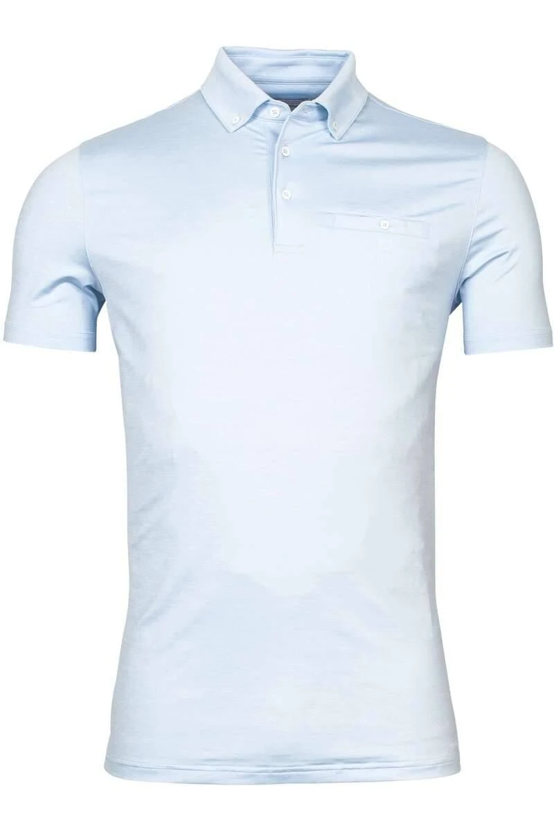 Schönes Giordano Modern Fit Poloshirt in der Farbe hellblau, Melange. Ein tolles, vielseitig kombinierbares Poloshirt von Giordano, das sehr angenehm zu tragen ist. Das Material ist ein feines Jersey-Gewebe aus 60% Polyamid / 26% Polyester/ 14% Elasthane.
