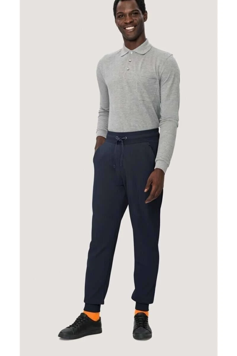 Schöne HAKRO Jogginghose in Regular Fit Passform. Die Jogginghose ist tinte – Einfarbig und aus 70% Baumwolle / 30% Polester.