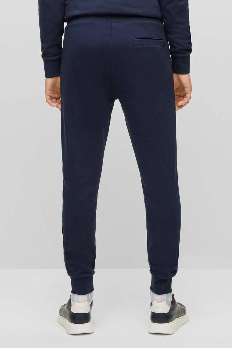 Hochwertige BOSS Regular Fit Jogginghose in der Farbe navy, einfarbig. Die Jogginghose ist aus 60% Bio-Baumwolle / 40% Baumwolle und maschinenwaschbar.