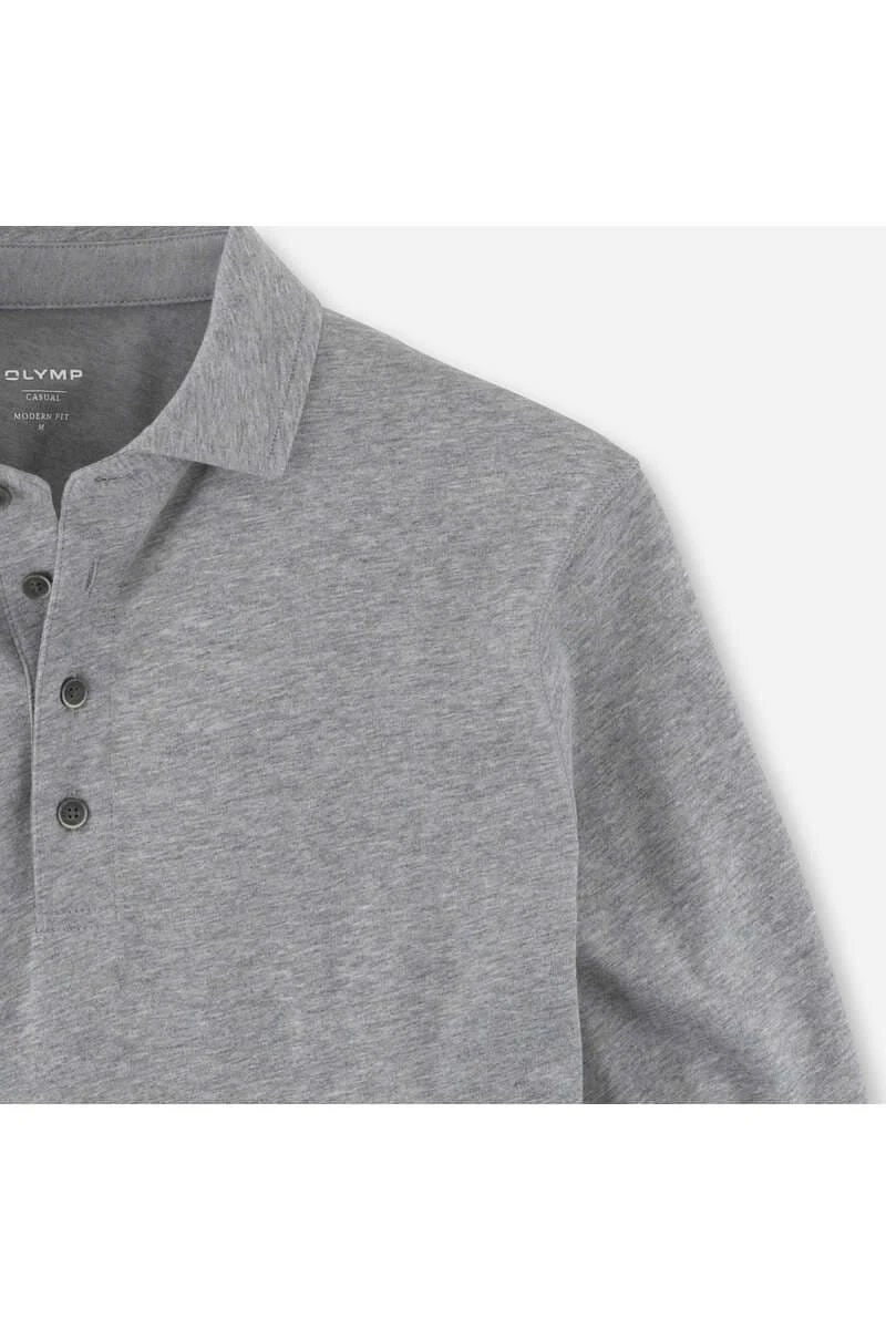 Schönes OLYMP Modern Fit Longsleeve Poloshirt in der Farbe mittelgrau, Einfarbig. Ein tolles, vielseitig kombinierbares Poloshirt von OLYMP, das sehr angenehm zu tragen ist. Das Material ist ein feines Jersey-Gewebe aus 75% Baumwolle / 25% Lyocell.