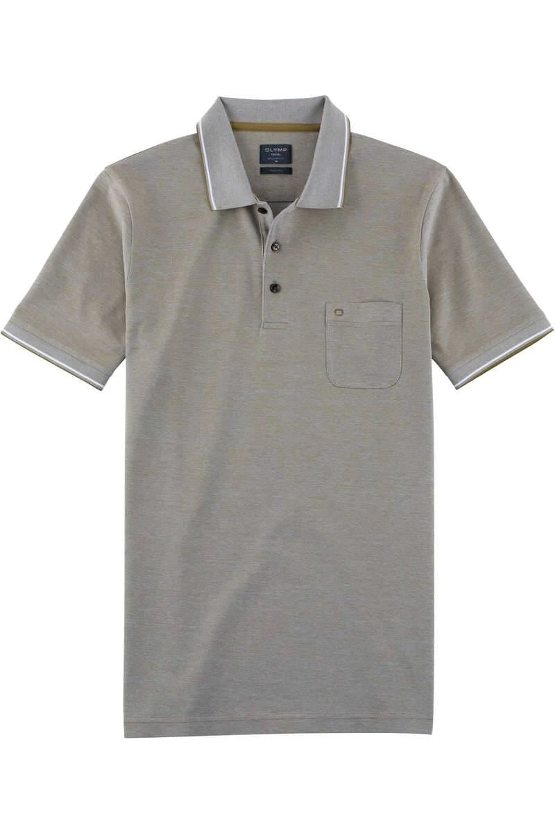 Schönes OLYMP Modern Fit Poloshirt in der Farbe khaki, Melange. Ein tolles, vielseitig kombinierbares Poloshirt von OLYMP, das sehr angenehm zu tragen ist. Das Material ist ein feines Piqué-Gewebe aus 100% Baumwolle.