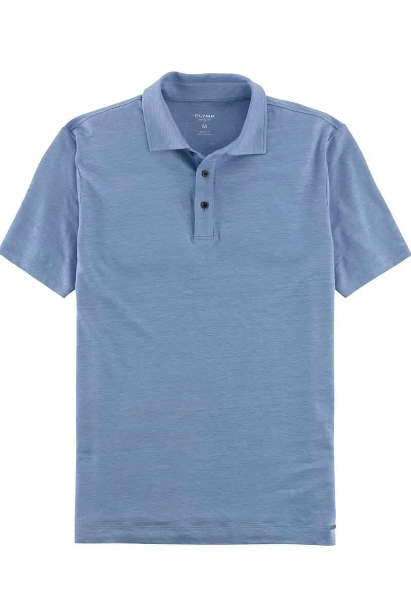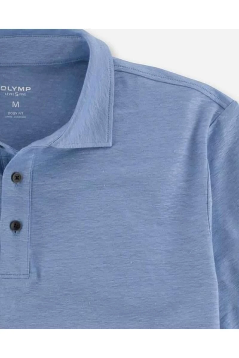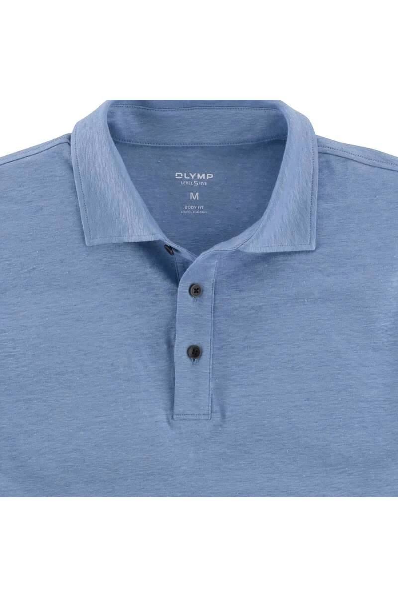 Schönes OLYMP Body Fit Poloshirt in der Farbe mittelblau, Einfarbig. Ein tolles, vielseitig kombinierbares Poloshirt von OLYMP, das sehr angenehm zu tragen ist. Das Material ist ein feines Leinen-Gewebe aus 95% Leinen / 5% Elasthan.