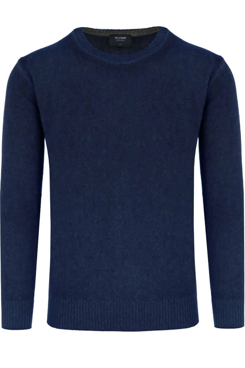 Hochwertiger Olymp-Rundhals aus 100% Schurwolle in klassischer Passform, Farbe nachtblau – Einfarbig. Die hervorragende Verarbeitung bietet höchsten Tragekomfort und sorgt für eine tolle Formstabilität. Der Pullover kann durch seine spezielle Verarbeitung der Wolle sogar in der Waschmaschine gewaschen werden.