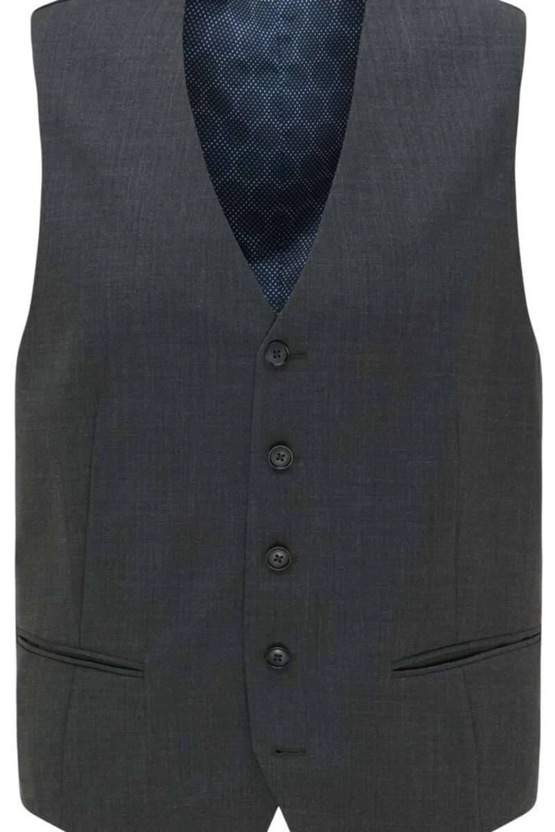 Schöne Pierre Cardin Weste in der Farbe anthrazit, Einfarbig. Die Westen von Pierre Cardin zeichnen sich durch perfekte Passformen und hohen Tragekomfort aus. Das Material dieser Weste ist 53% Polyester / 43% Schurwolle / 4% Elasthan.