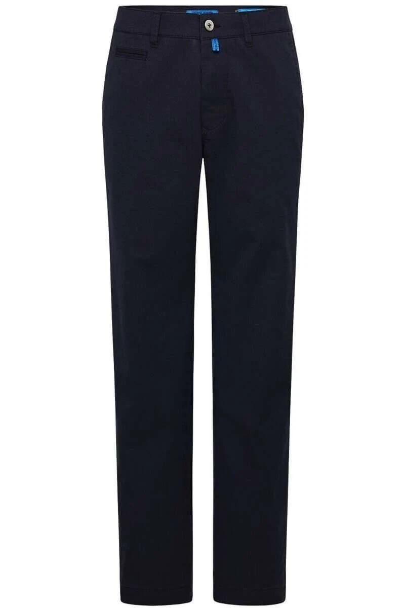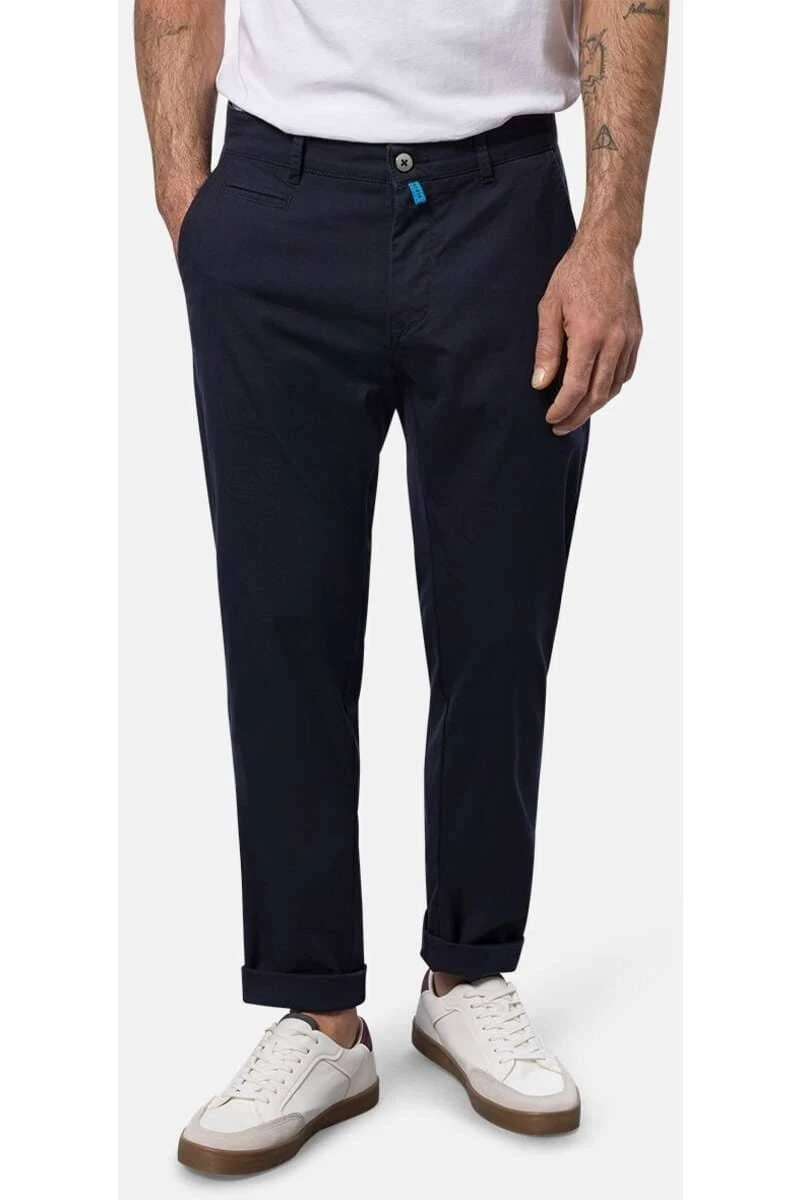 Modische Pierre Cardin Chino in der Farbe marine, Meliert. Die Herren Hosen von Pierre Cardin zeichnen sich durch perfekte Passformen und hohen Tragekomfort aus. Das Material dieser Chino ist 71% Baumwolle / 27% Polyester / 2% Elasthan.