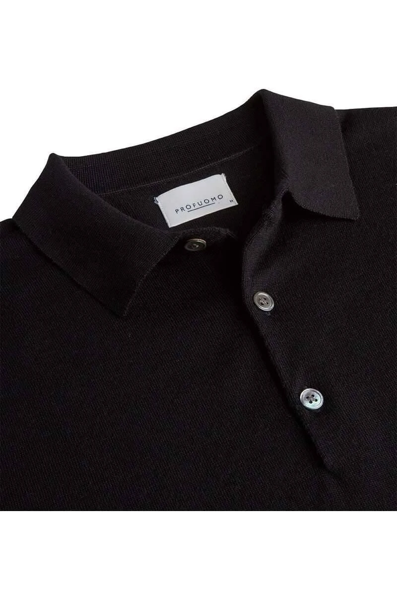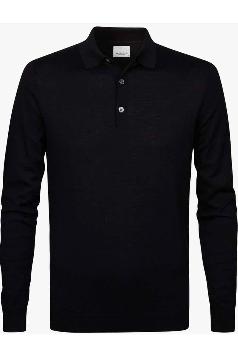Schönes Profuomo Slim Fit Longsleeve Poloshirt in der Farbe schwarz, Einfarbig. Ein tolles, vielseitig kombinierbares Poloshirt von Profuomo, das sehr angenehm zu tragen ist. Das Material ist ein feines {#fabric#}-Gewebe aus 100% Schurwolle.