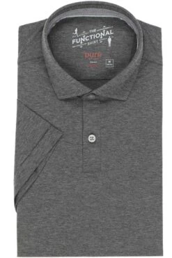 Schönes Pure Slim Fit Poloshirt in der Farbe grau, Einfarbig. Ein tolles, vielseitig kombinierbares Poloshirt von Pure, das sehr angenehm zu tragen ist. Das Material ist ein feines Jersey-Gewebe aus 42% Polyamid / 42% Polyester / 16% Elastan.