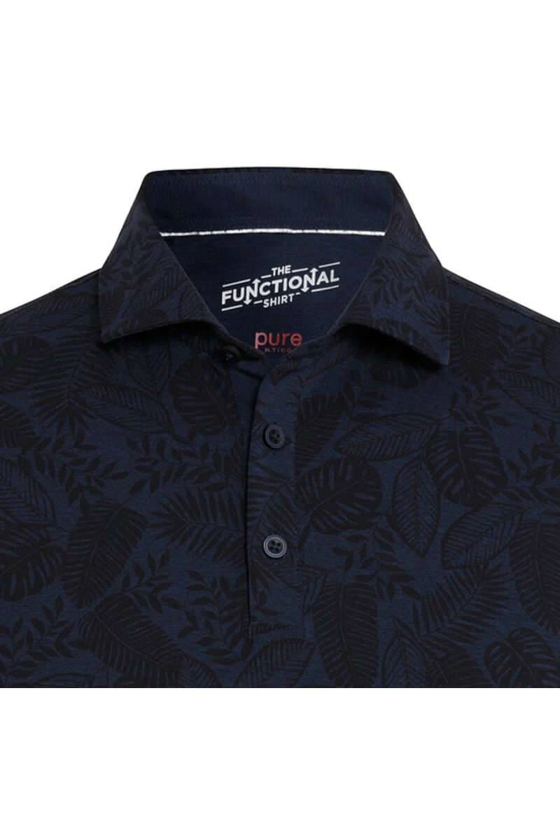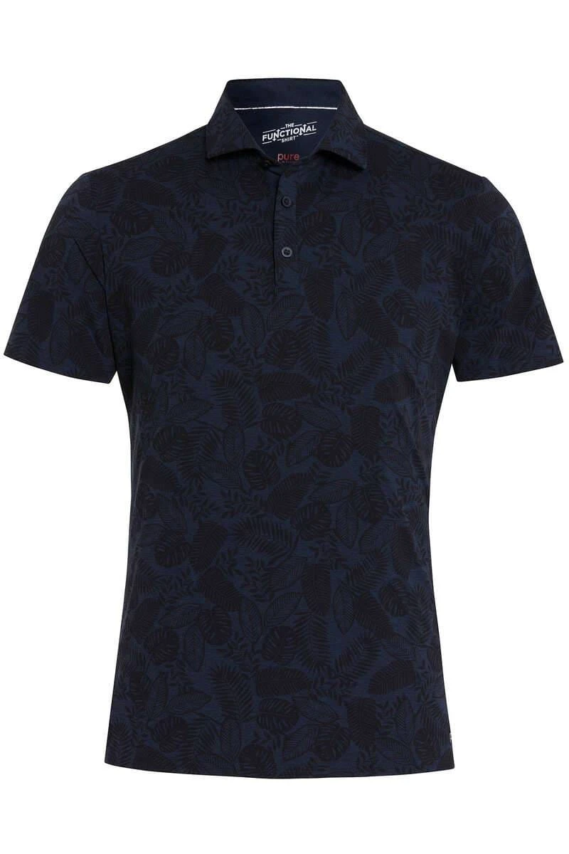 Schönes Pure Slim Fit Poloshirt in der Farbe marine, Gemustert. Ein tolles, vielseitig kombinierbares Poloshirt von Pure, das sehr angenehm zu tragen ist. Das Material ist ein feines Jersey-Gewebe aus 60% Polyester / 29% Polyamid / 11% Elasthan.