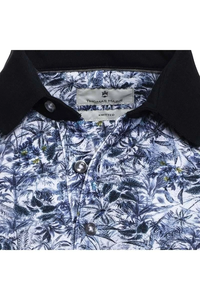 Hochwertiges Thomas Maine Tailored Fit Poloshirt in der Farbe blau, Gemustert. Ein tolles, vielseitig kombinierbares Poloshirt von Thomas Maine, das sehr angenehm zu tragen ist. Das Material ist ein feines Piqué-Gewebe aus 100% Baumwolle.