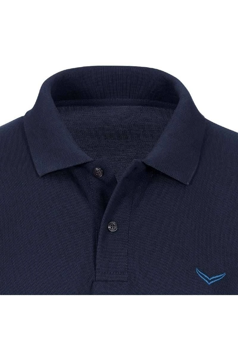 Das TRIGEMA Comfort Fit Poloshirt in der Farbe navy, Einfarbig für modebewusste Männer. Der klassische Schnitt dieses Poloshirts ist bequem und eignet sich besonders für starke Herren mit Volumen.