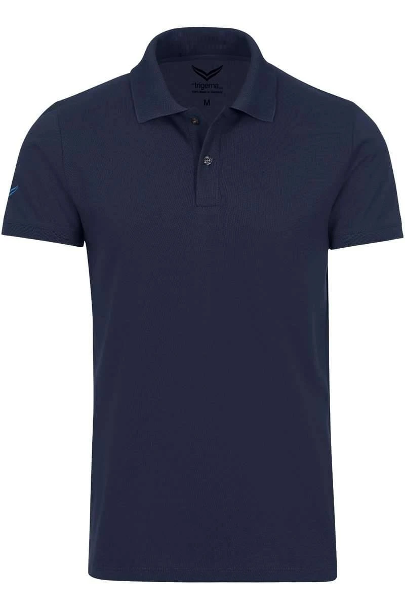 Das TRIGEMA Slimeline Poloshirt in der Farbe navy, Einfarbig für modebewusste Männer. Der Slim Fit Schnitt dieses Poloshirts ist figurbetont und eignet sich besonders für sportlicher Herren.
