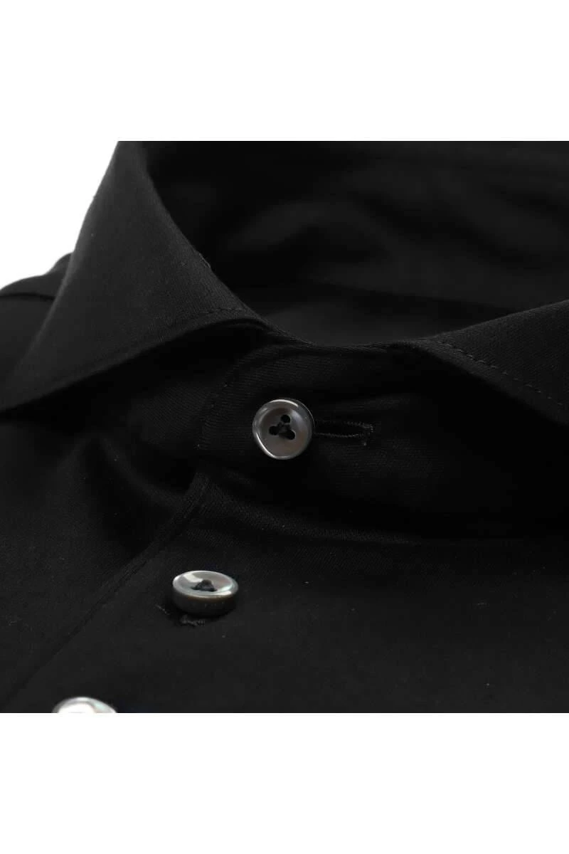 Tragekomfort und Passform in Perfektion – tailliert und körperbetont. Das Van Laack Slim Fit Hemd mit einem Haifisch-Kragen, in der Farbe schwarz – Einfarbig.
